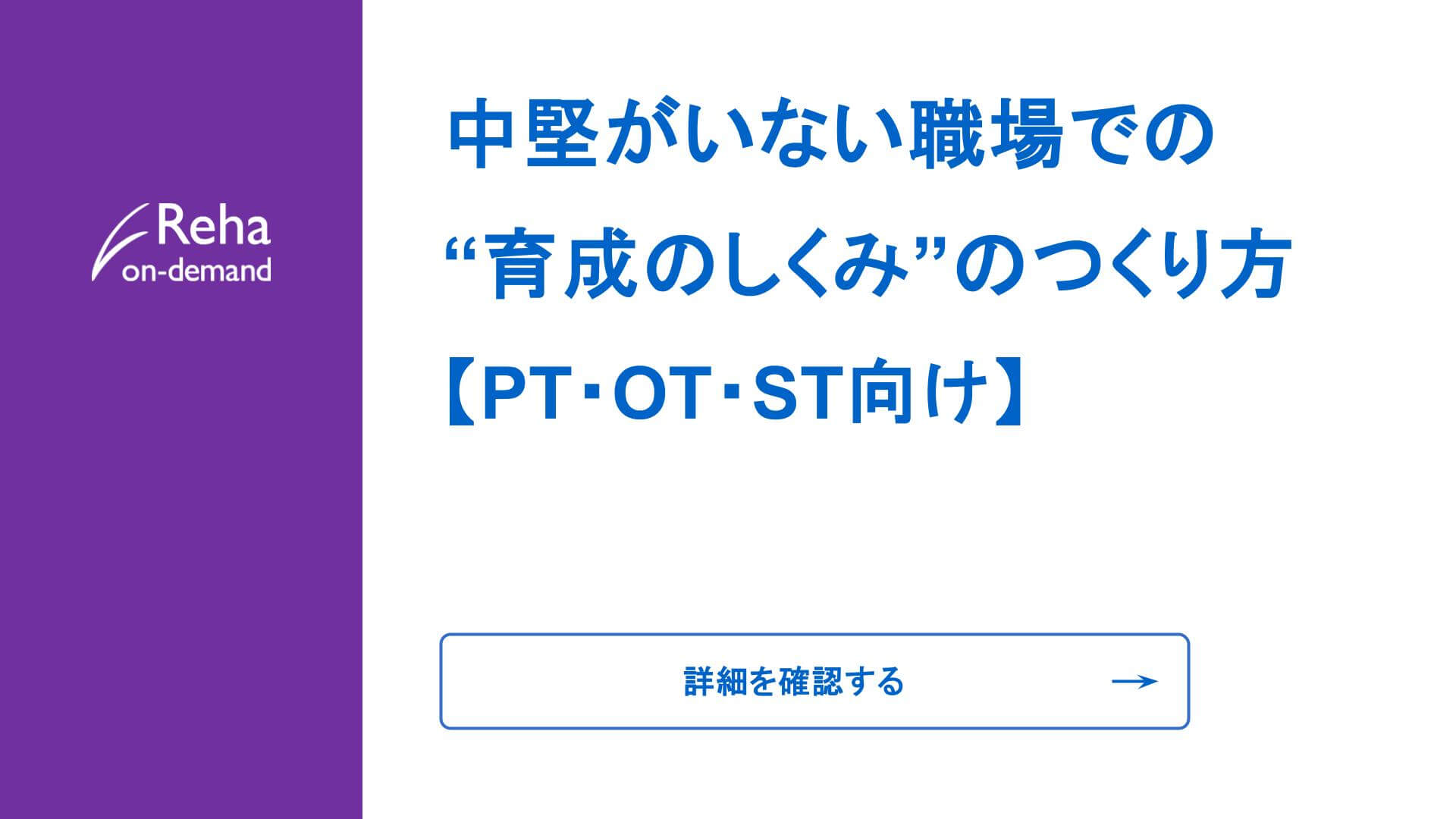 中堅がいない職場での“育成のしくみ”のつくり方【PT・OT・ST向け】
